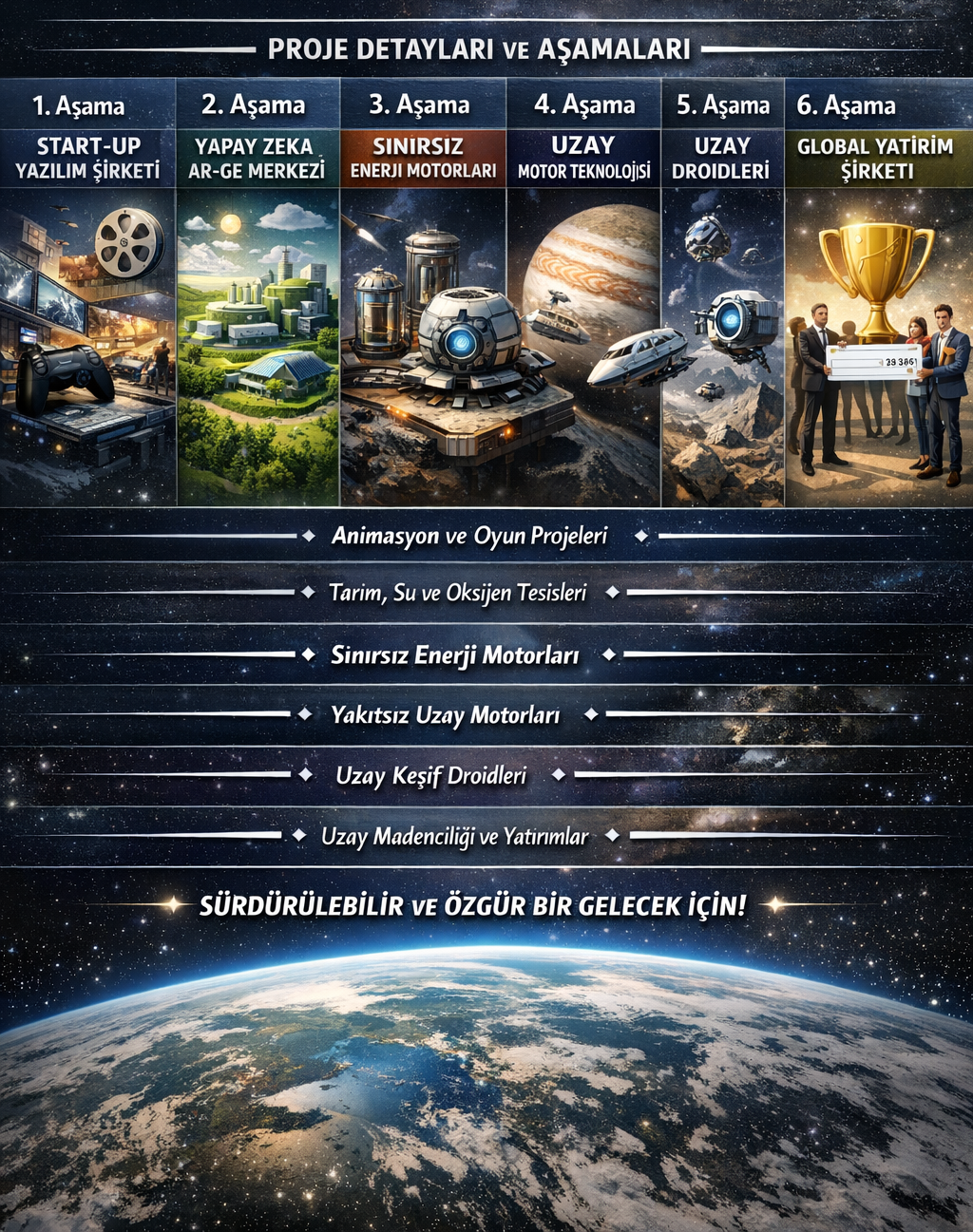 - Phase 5 - Developing and Producing AI-Controlled Space Droid Technology for Space Research.